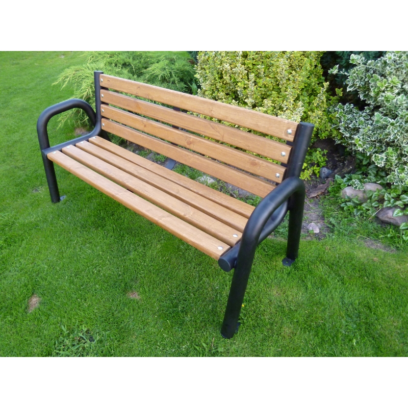 Konstrukcja podstawy ławki i wykonane są ze stali rura f 6 a pomalowana zostały trwałą metodą proszkową w kolorze czarnym co zapewnia długoletnią trwałość.