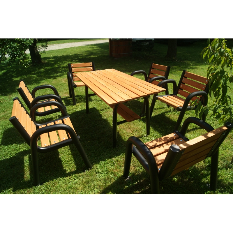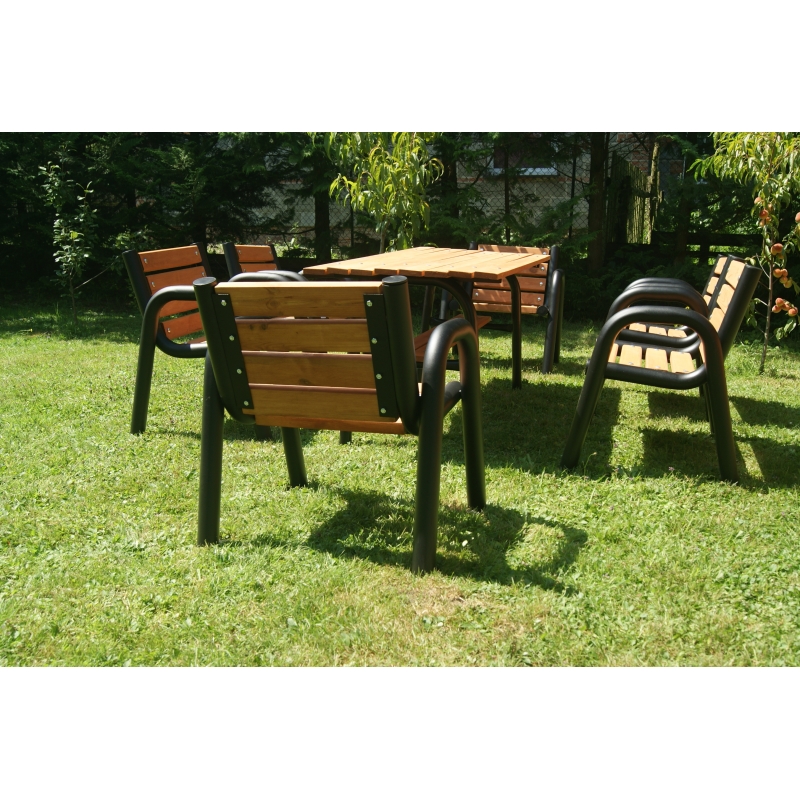 Konstrukcja podstawy ławki i  wykonane są ze stali  rura f 6 a pomalowana zostały trwałą metodą proszkową w kolorze czarnym co zapewnia długoletnią trwałość.